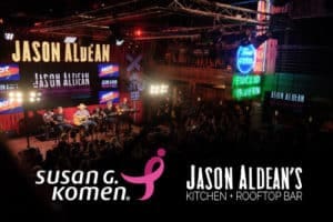 As an avid supporter towards the fight against breast cancer, current three-time CMA nominee Jason Aldean will celebrate his annual Concert For The Cure at Jason Aldean’s Kitchen + Rooftop Bar in Nashville on Oct. 3rd. With all proceeds benefitting Susan G. Komen Central Tennessee, the night continues Aldean’s longstanding partnership with Susan G. Komen after raising more than $3.6 million to benefit chapters across the country. Fans will be treated to an intimate performance by the three-time ACM Entertainer of the Year after a three-course meal off the restaurant’s menu, with all food being donated courtesy of TC Restaurant Group. A limited number of tickets are now available for $100 (exact seating is based on group size and time of guests’ arrival).